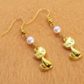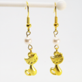 ゴールドカラー 猫とスワロフスキーパール(クリスタルホワイト)の大人可愛いピアス サージカル可
