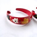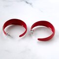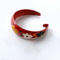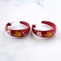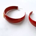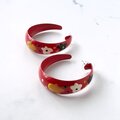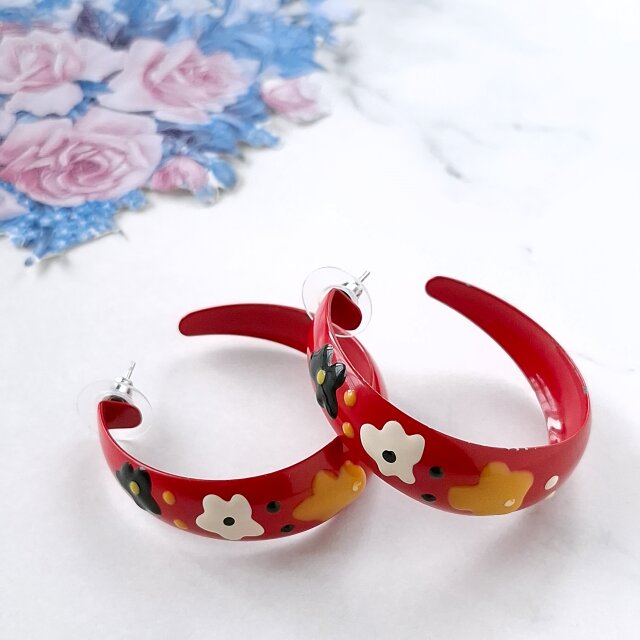 レッドのエナメルをベースにブラック、ホワイト、イエローのフラワーがペイントされた大ぶりなフープのヴィンテージピアスです。