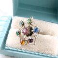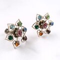 openwork heart petals colorful rhinestone ヴィンテージイヤリング