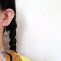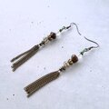 plastic glass beads chain dangle brass ヴィンテージピアス