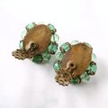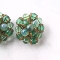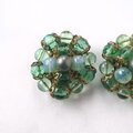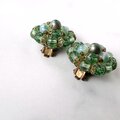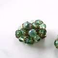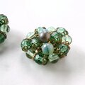グリーン系のガラスビーズとプラスチックのパール調のグリーンビーズが集まったクラスターデザインのヴィンテージイヤリングです。
