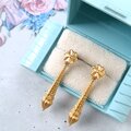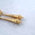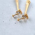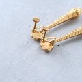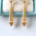 1927年ロードアイランドにて創業、1937年会社名を変更しアクセサリー制作を開始したMONET(モネ)のスミソニアン博物館等の収蔵品からインスピレーションを得て製造したスミソニアンコレクションのフラワーに筆のような石柱のようなデザインのマットゴールドのメタルがぶら下がったデザインのヴィンテージイヤリングです。