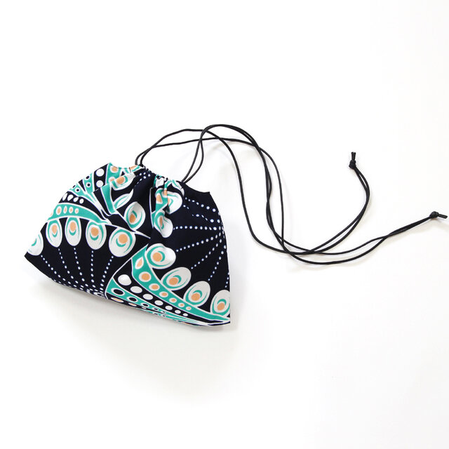 アフリカ布の巾着ショルダー( 幾何学模様 )斜めがけ たすき掛け インナーバッグ