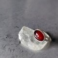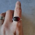 こっくりとした赤色つるんと可愛らしいヘソナイトガーネットをシルバーリングに仕立てました。