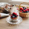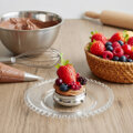 シルバーのピルケースの上にチョコレートホイップを絞り