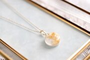 思っていたよりも、ペンダントトップが大きくて、私はこの位だといいなと思っていたので、とってもうれしくなりました!!お花が大好きで、特に白いお花が好きで、このネックレスには白いお花が入ってるので、大好きなお花を身につけられて、とってもうれしいです! 作って下さり、ありがとうございました。大切にします️