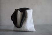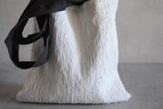 シンプルで合わせやすいアイボリーの綿生地を細めに裂き、高密度に織り上げたバッグです。