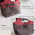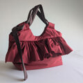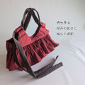 しっとり手触り・上品な光沢の撥水加工ポリエステルに中綿を挟んだふっくらフリルのトートバッグです。