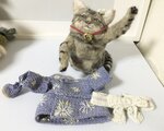 マヌルネコちゃんが、来ました!籠を手にした姿がとても可愛らしくて、おまけにセーターも素敵です。大切にします。