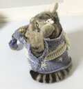 【一点物・高さ18cm】ぽっちゃり「ブサ可愛」な福招き!キジトラ猫の羊毛フェルトオブジェ(夜空の花火着物)