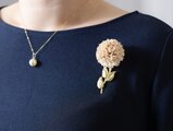 【コサージュ・ブローチ】アンティーク・ヴィンテージなピンポンマムの一輪の花 Ⅱ ピンクベージュ