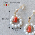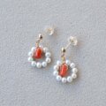 K10 珊瑚と真珠を使った手作りのサークルピアス
