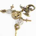 スチームパンク風アンティークゴールドのドラゴンと歯車のネックレス ロザリオ アジャスター付