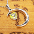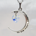 アンティークシルバーの三日月とハート型の大粒スワロフスキーのネックレス クリスタルオーロラ 長さ変更可 アジャスター可
