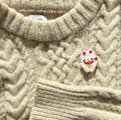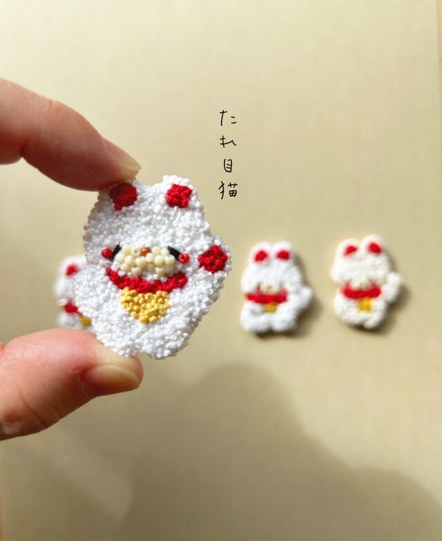 1つ目のブローチは、たれ目猫の招き猫です。