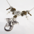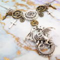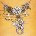アンティークシルバー ドラゴン(竜)と歯車の本格的スチームパンク多層多重ネックレス ロザリオ 長さ調整可 アジャスター付
