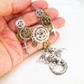 猫と鍵と歯車・ギアのスチームパンク風アシンメトリー ピアス アンティークカラー 金古美とても可愛いです! ありがとうございました!