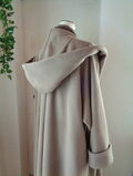 大きなフードとゆったりドレープが優雅な雰囲気の