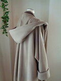 パッチワークスカート 着回し 大人可愛い シック ドレープ ビッグシルエット ビッグフード 魔法使い 魔法学校 修道士 フード付きコート 軽い 軽量 肩がこらない 軽量コート ロングコートマキシ丈コート ローブコート ローブ マキシ丈 ロングローブ パリ ロマンティック ゆったり サイズフリー アンチピリング トープ ベージュ サンドベージュ ご褒美 1点もの 冬支度 クリスマス お正月 『冬支度ハンドメイド2025』