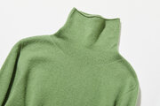 デニムやコーデュロイパンツと組み合わせ、スニーカーやローファーで軽やかに。タートルをくしゃっとさせると、こなれた印象に。