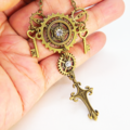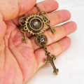 時を操る秘密の鍵。アンティークゴールドの歯車とロザリオネックレス