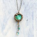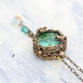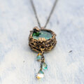 蓮池の我が子を見守る蛙ネックレス時計S若草