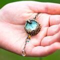 素敵な時計が届き、すぐに腕に付けてみました。何とも愛らしくガラスの色合いや金属部分のデザイン、皮ベルトとの雰囲気も素敵で、つけているだけで心が躍り出し幸せな気持ちになります。どこへ行くにもつけていくだけで心強くなれそうな私のお守りみたいな気がします。心を込めて制作して下さったものだからこその、魂がこもった強さと美しさを身につけることができ本当に嬉しいです。手元を見るだけでひとり笑顔になっています。