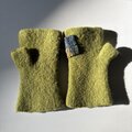 手編みの手袋をフェルト化させて密度を高めた温かい指なしミトンです。