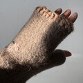 手編みの手袋をフェルト化させて密度を高めた温かい指なしミトンです。
