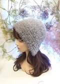 ニット帽 子 もふもふニットキャップ ファー素材 グレー