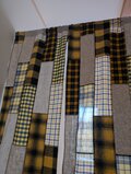 秋冬♥️あったかロングのれん❤マスタードイエローチェック&リネン無地❤細長パッチワーク❤✭83✕175✭