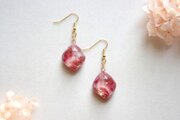 レジンアート 鉱物ピアス〈赤い燐光〉