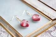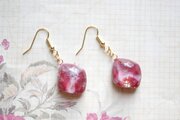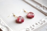 ワインレッドとホワイトのマーブル模様と、きらめくラメが華やかで美しいピアス。