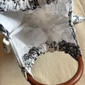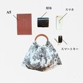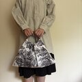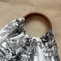 フランスの伝統柄 Toile de Jouy を用いた、木製リングのハンドバッグ。