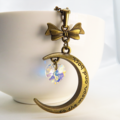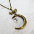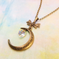 アンティークゴールド 三日月とハートのペンダントネックレス スワロフスキー(クリスタルオーロラ) 長さ調整可