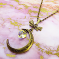 月とハートに誓う、永遠の愛。アンティークゴールドのロマンティックネックレス