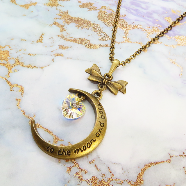そして三日月に刻まれた「to the moon and back」のメッセージがこのネックレスにロマンティックな物語を添えています