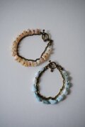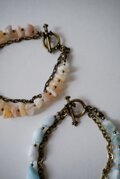 少しずつ色の違う柔らかな雰囲気のブルーメノウと、清々しい水色のガラスビーズのコントラスト。とても繊細で美しいです。 ポイントに配置された真鍮ビーズはほんとうにツボです! とても気に入りました。