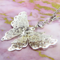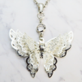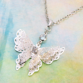 舞い降りた、一瞬の美しさ。シルバーカラーの立体的な蝶ネックレス