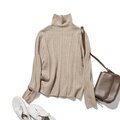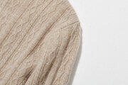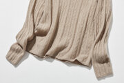 冬の定番に、立体アラン模様の美しい一品 カシミヤとウールのハイネックニット セーター 薄茶色 251122-2