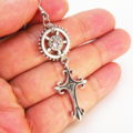 時を刻む、アンティークシルバーのロザリオと歯車ピアス