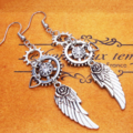 時空を翔ける、機械仕掛けの羽根。アンティークシルバーの歯車と翼ピアス
