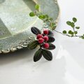 元気をもらえる赤い実のヒペリカムのブローチを布花に仕立てました。