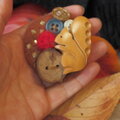 正面はこんな感じ、子リスブローチやボタン・ビーズが集まっています。