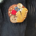 とめつけた、微妙に手作り感あふれるボタンブローチです。