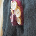 色々な色のボタンやビーズ等を組み合わせて、羊毛フエルトの土台に糸で