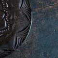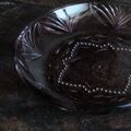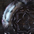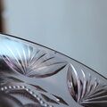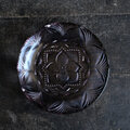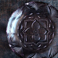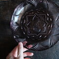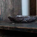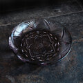 見込みに花文様◆昭和中期 プレスガラス中皿 vintage/antiques 古民家 古道具 ダークパープル