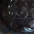 見込みの大きな花文様が印象的でプレスの文様も彫り深くクッキリとしたデザインです。