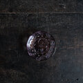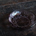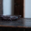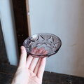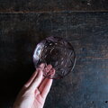 見込みに花文様◆昭和中期 プレスガラス小皿 vintage/antiques 古民家 古道具 ダークパープル