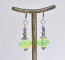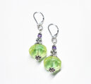 淡いバイカラーアンティークウランガラスとシルバービーズ、アメジストを繋いだピアスです。